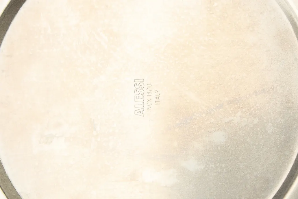 Corbeille carrée en acier inoxydable signée Alessi (marquage ALESSI INOX 18/10 ITALY). Pièce sobre et fonctionnelle, pensée pour la table ou la cuisine, qui combine la qualité d’exécution propre à Alessi et une esthétique simple et utile.