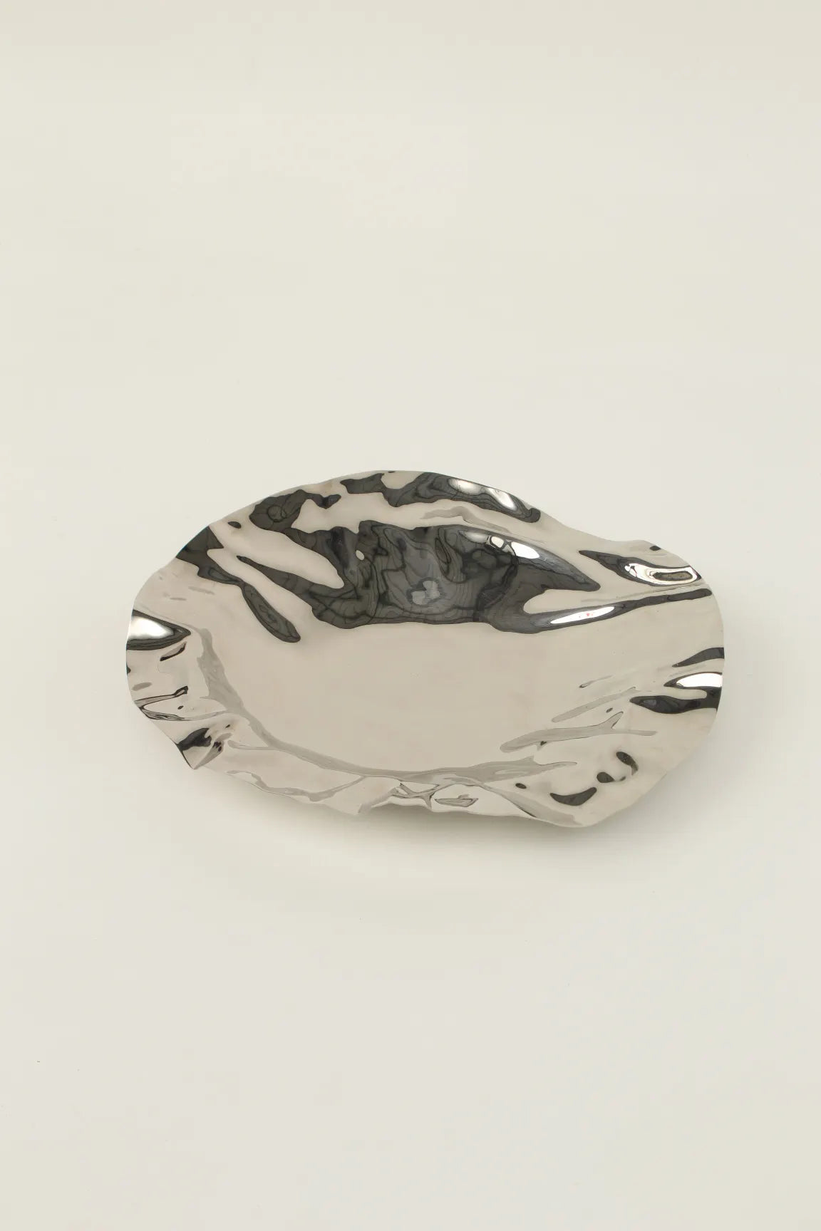 Le poli miroir de l’acier inox crée des reflets profonds et variables selon la lumière, faisant de Port autant un objet fonctionnel qu’une sculpture pour la table.