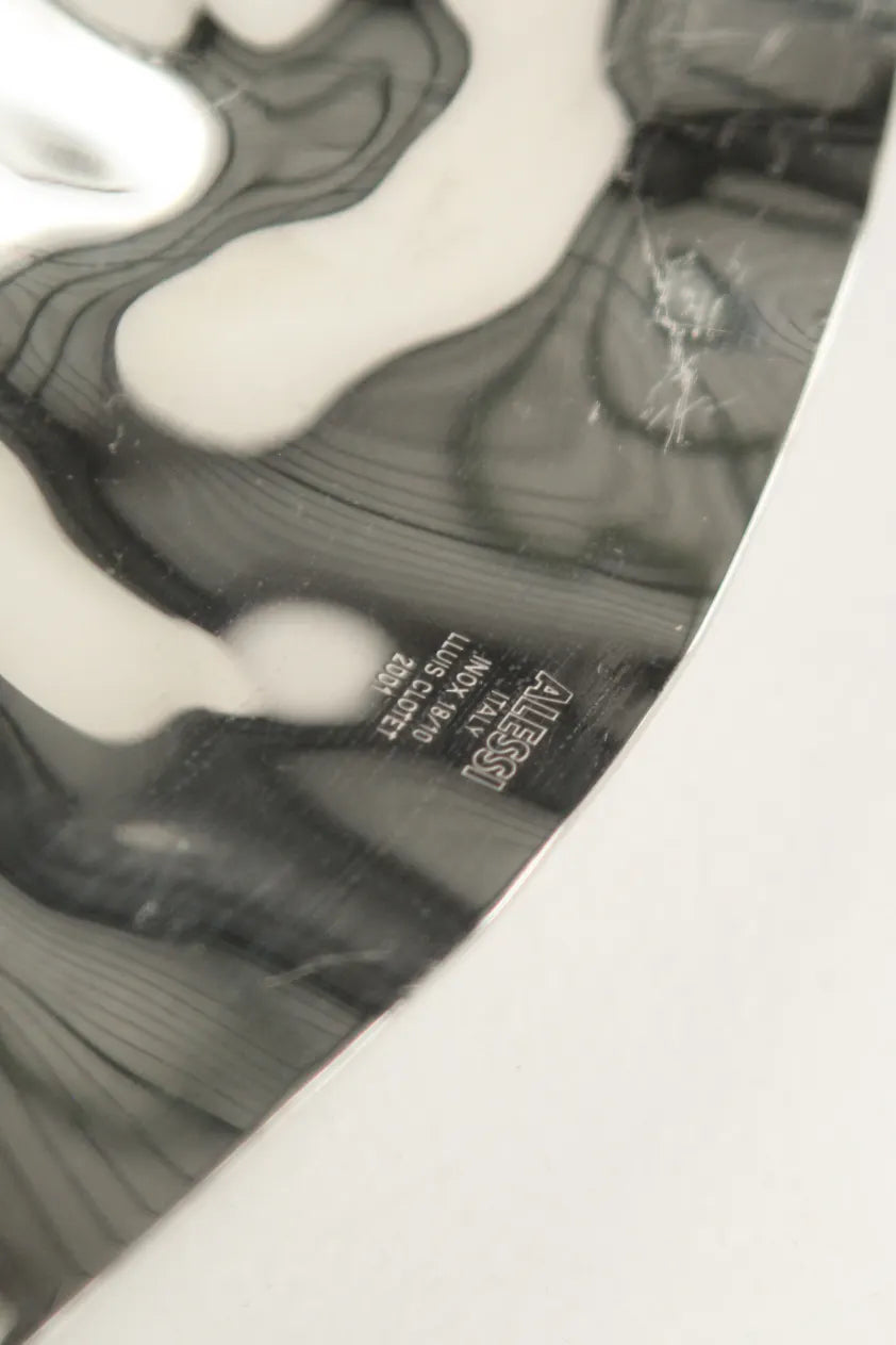 Corbeille Port dessinée par Lluís Clotet pour Alessi. Pièce-signature reconnaissable à ses bords froissés, obtenus par technique de formage à froid, qui donnent à l’objet une silhouette presque textile malgré l’acier.